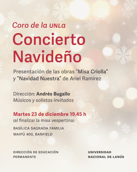 El evento- que contará con la dirección de Andrés Bugallo- tendrá músicos y artistas invitados, que presentarán las obras "Misa Criolla" y "Navidad Nuestra" de Ariel Ramírez.