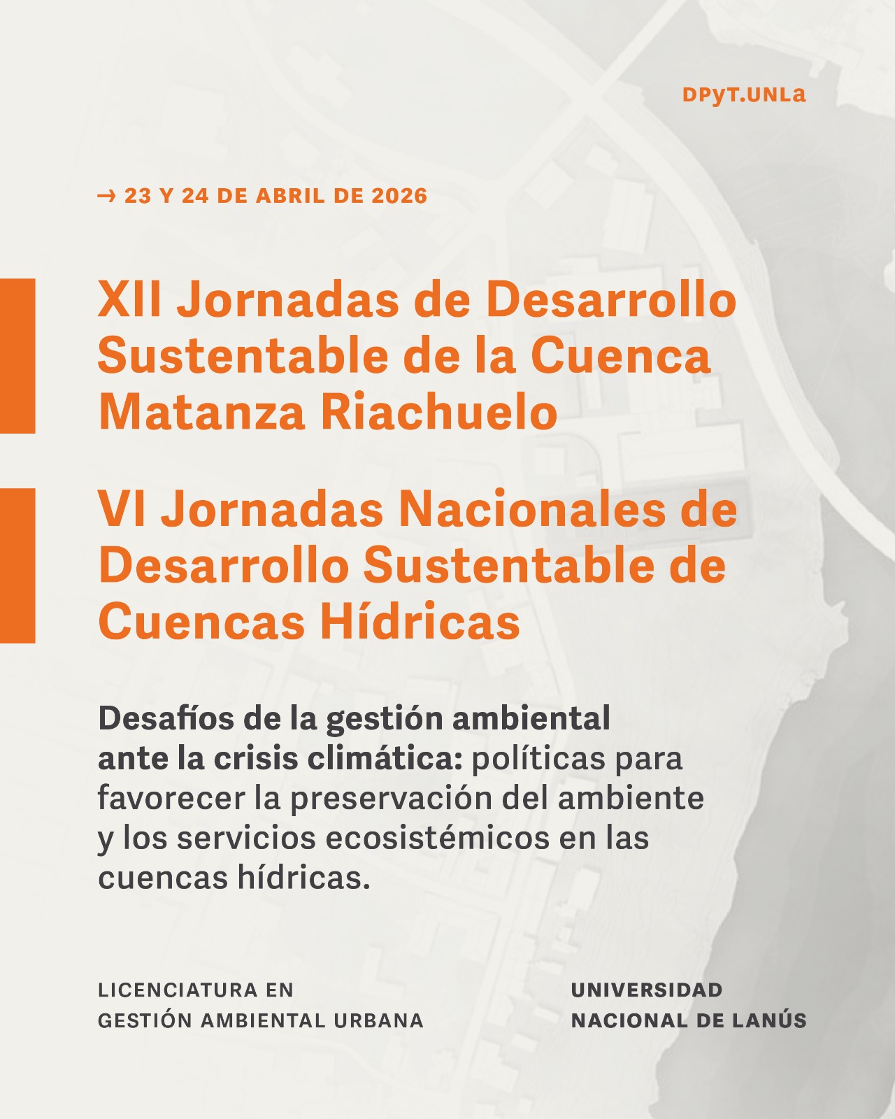 Las VI Jornada de Desarrollo Sustentable de Cuencas Hídricas, tiene como antecedentes cinco jornadas previas que llevan su mismo nombre, más once Jornadas de Desarrollo Sustentable de la Cuenca Matanza Riachuelo organizadas por la Licenciatura en Gestión Ambiental Urbana (GAU), de la Universidad Nacional de Lanús (UNLa), en colaboración con numerosas instituciones nacionales, provinciales y extranjeras como el Departamento de Recursos Hídricos de la Nación Argentina y con la financiación de la Secretaría de Ciencia y Técnica de la Nación, la Comisión de Investigaciones Científicas, ACUMAR, el Laboratório de Estudos Urbanos, Regionais e Ensino de Geografia, Universidade Federal De Pelotas (UFPel), Brasil y distintas ONGs.