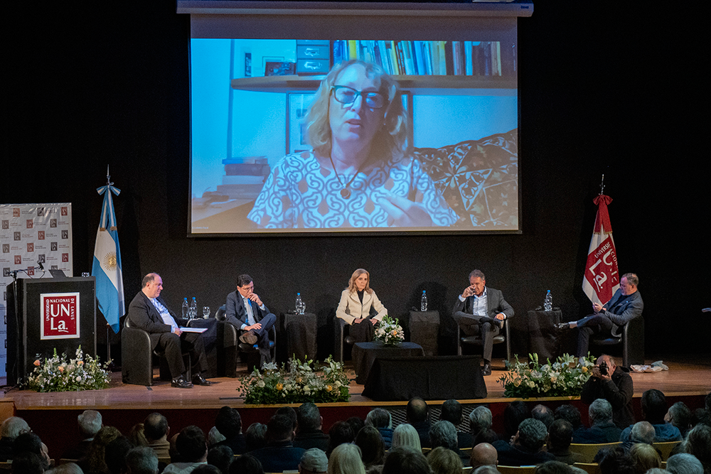 La jornada comenzó con las palabras del rector de la UNLa, Daniel Bozzani, quien subrayó la relevancia de mantener vivo el legado del Papa: “En tiempos donde vivimos en un mundo desordenado y confuso, su palabra emerge como una brújula ética clara y valiente, que interpela a la humanidad”.