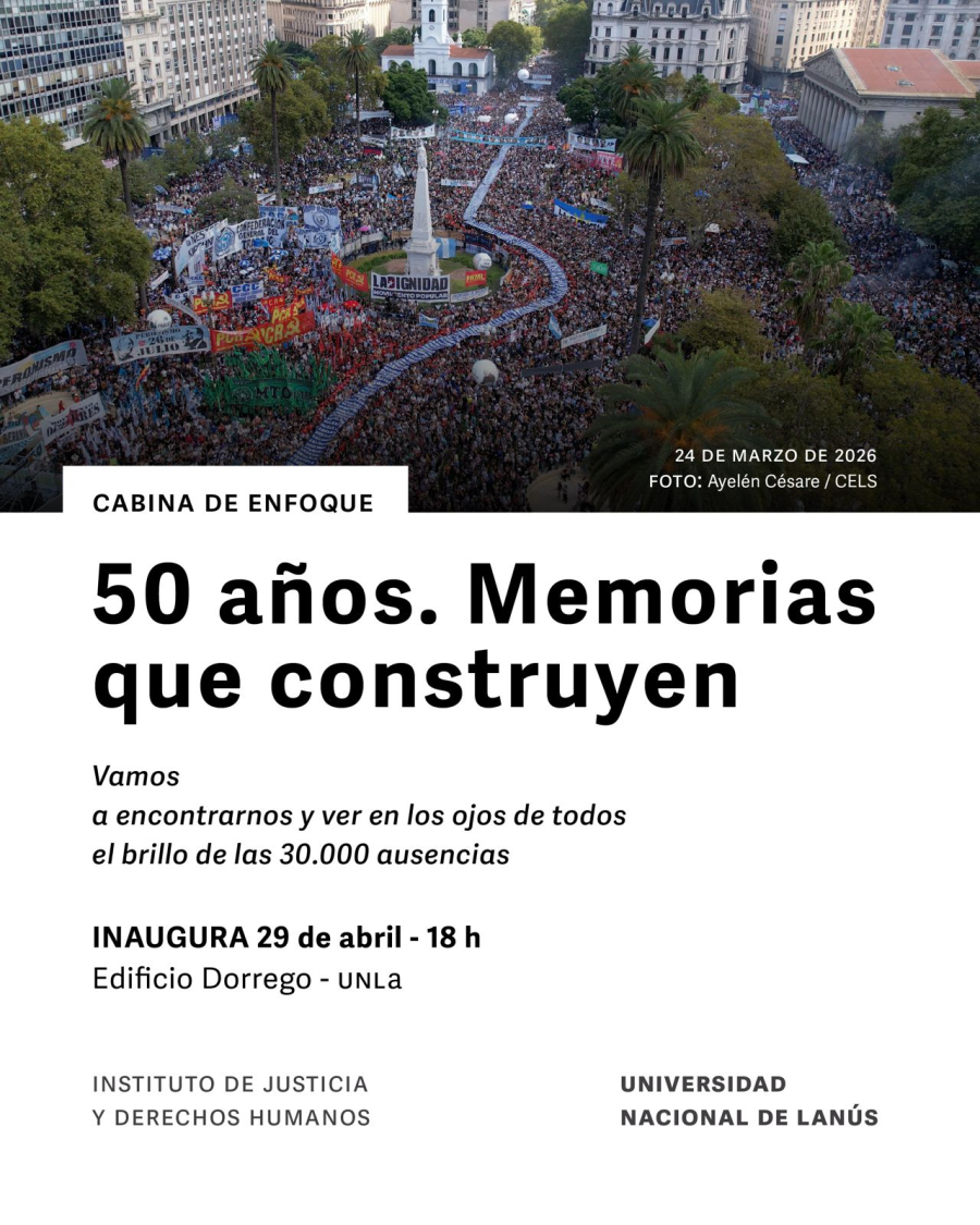 En el marco de un nuevo aniversario del Golpe Cívico-Militar, inauguramos la segunda edición de la Cabina de enfoque. Hoy: La memoria, una propuesta artístico-inmersiva que se inscribe dentro del proyecto de investigación Amílcar Herrera “Memorias sociales del Conurbano Sur: el artivismo político y las demandas de derechos”.