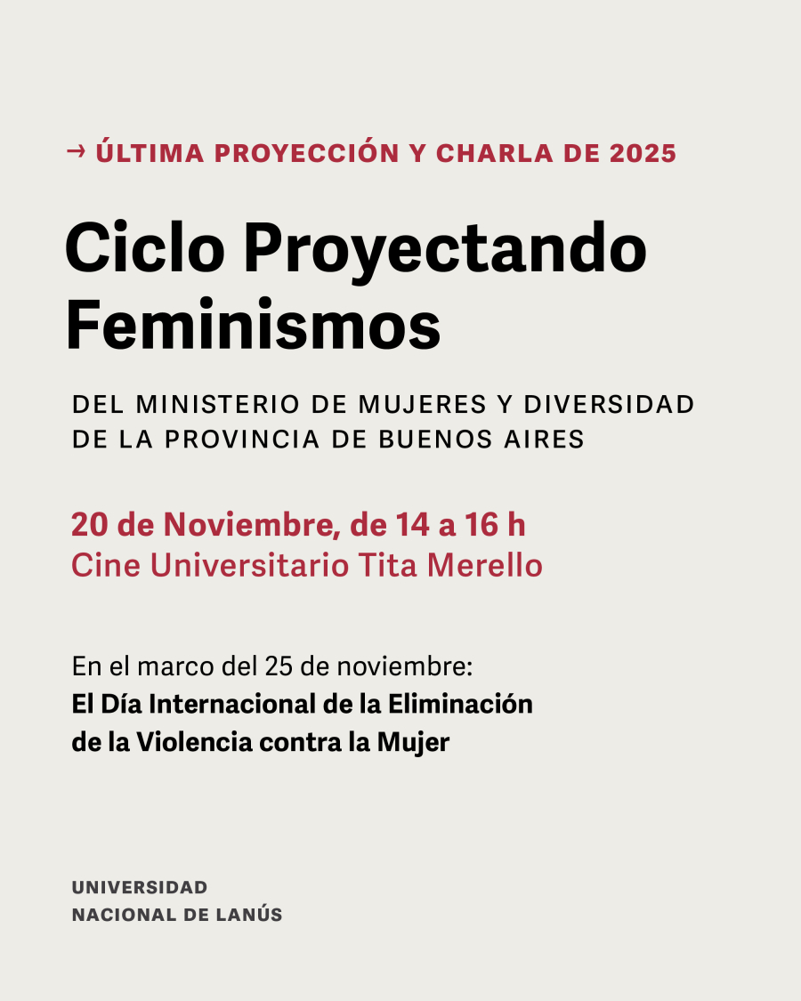 En el marco del Día Internacional de la Eliminación de la Violencia contra la Mujer, este 20 de noviembre de 14 a 16 horas se realizará la última edición del ciclo Proyectando Feminismos, en el cine Tita Merello de nuestra universidad.